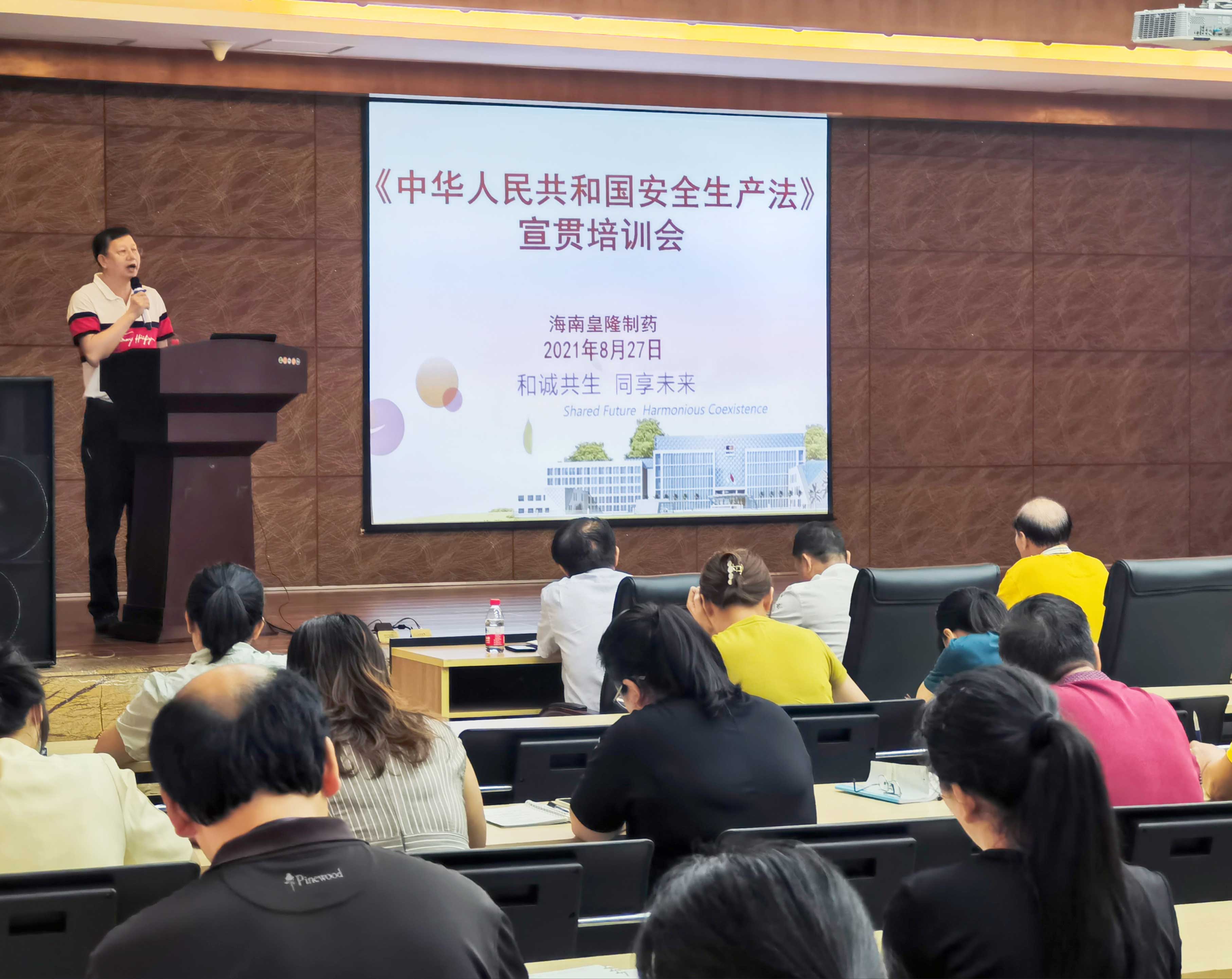 海南皇隆制藥股份有限公司高度重視此次新安全生產(chǎn)法的頒布實(shí)施,為了提高全體員工對(duì)新《安全生產(chǎn)法》的認(rèn)識(shí),全面加強(qiáng)安全生產(chǎn)法治觀念,提升企業(yè)安全管理水平,2021年8月27日組織開(kāi)展新《安全生產(chǎn)法》宣貫培訓(xùn)會(huì)議,公司安委會(huì)主任陳益智、副主任史江永、何晶及陳國(guó)華、馬和東、葉華等16名安委會(huì)成員、公司專職(兼職)安全員、各部門(mén)領(lǐng)導(dǎo)及骨干成員等參加了此次培訓(xùn)